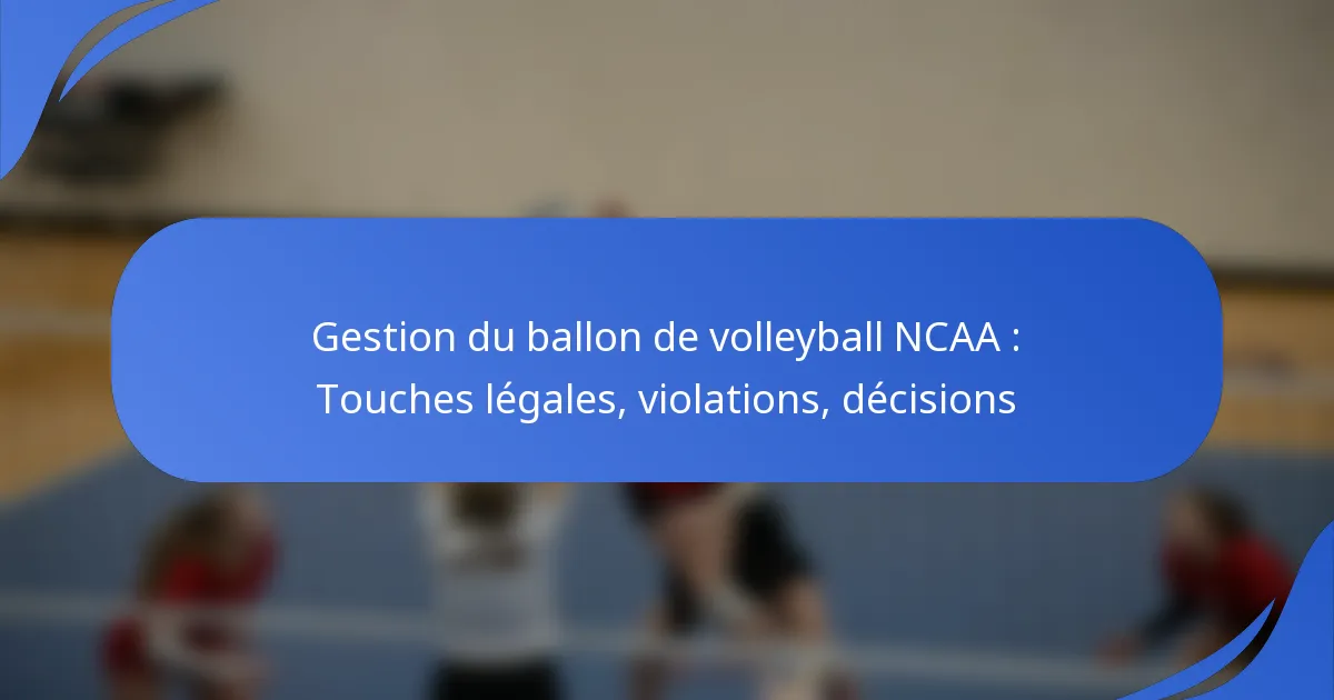Dans le volleyball NCAA, un toucher légal est défini comme tout contact avec le ballon qui respecte les règles de jeu établies. La familiarité avec les violations courantes de manipulation du ballon, telles que les doubles touches, les levées et les portées, est essentielle pour les joueurs et les entraîneurs afin d’assurer un jeu équitable et d’améliorer leurs compétences. Les arbitres jouent un rôle crucial dans l’évaluation de ces touches, en examinant la technique et l’exécution pour déterminer si des violations ont eu lieu.