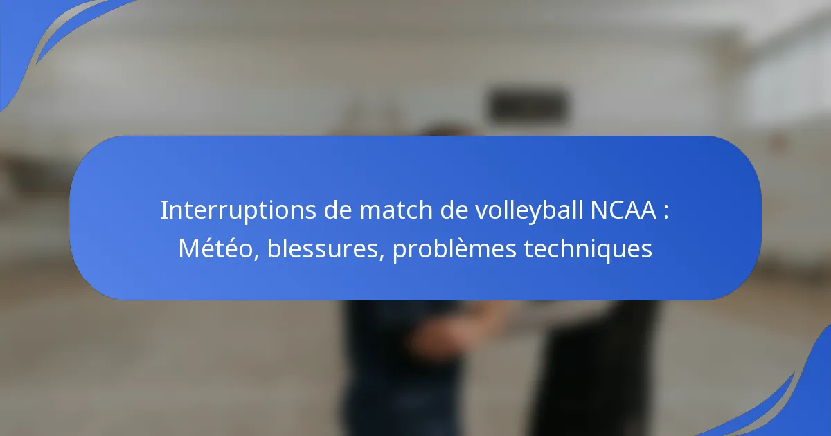 Les retards dans les matches de volleyball NCAA peuvent survenir pour diverses raisons, notamment les temps morts pour blessures, les défis vidéo et les interruptions liées aux conditions météorologiques. Chacune de ces causes peut avoir un impact significatif sur le déroulement et la durée d’un match, nécessitant des ajustements de la part des joueurs et des officiels.
