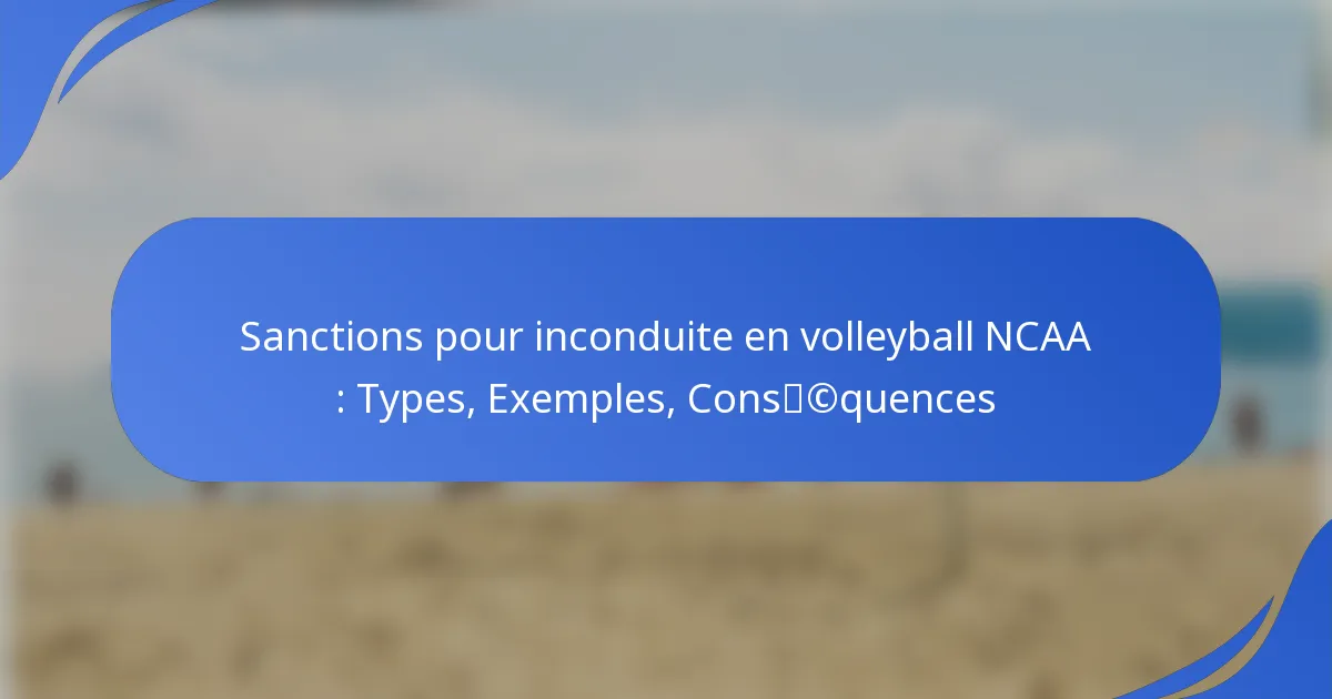 Les comportements inappropriés dans le volleyball NCAA englobent des actions qui enfreignent les règles et les normes éthiques du sport, affectant les joueurs, les entraîneurs et les officiels. Pour maintenir l’intégrité du jeu, la NCAA impose diverses sanctions, y compris des amendes, des suspensions et des disqualifications, adaptées à la gravité de la faute. Ces mesures sont appliquées à travers un système structuré impliquant les écoles et les agences d’application, garantissant un jeu équitable et la responsabilité au sein du sport.