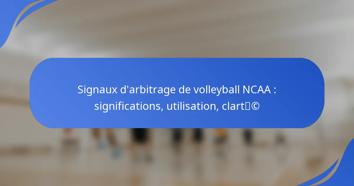 Le système de reprise vidéo de la NCAA en volleyball est une technologie avancée visant à améliorer la précision des décisions arbitrales pendant les matchs. En utilisant des caméras haute définition et des analyses en temps réel, il permet aux arbitres de revoir des actions spécifiques, garantissant ainsi l’équité et la justesse dans les décisions cruciales du jeu.
